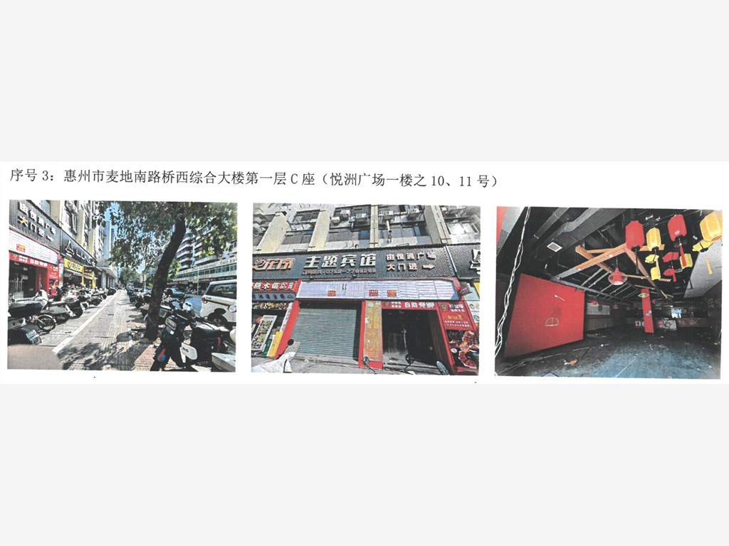 标的三:惠州市麦地南路桥西综合大楼第一层C座(悦洲广场一楼之10、11号)出租,面积约225平方米,月租金底价1.98万元,竞价保证金0.2万元;