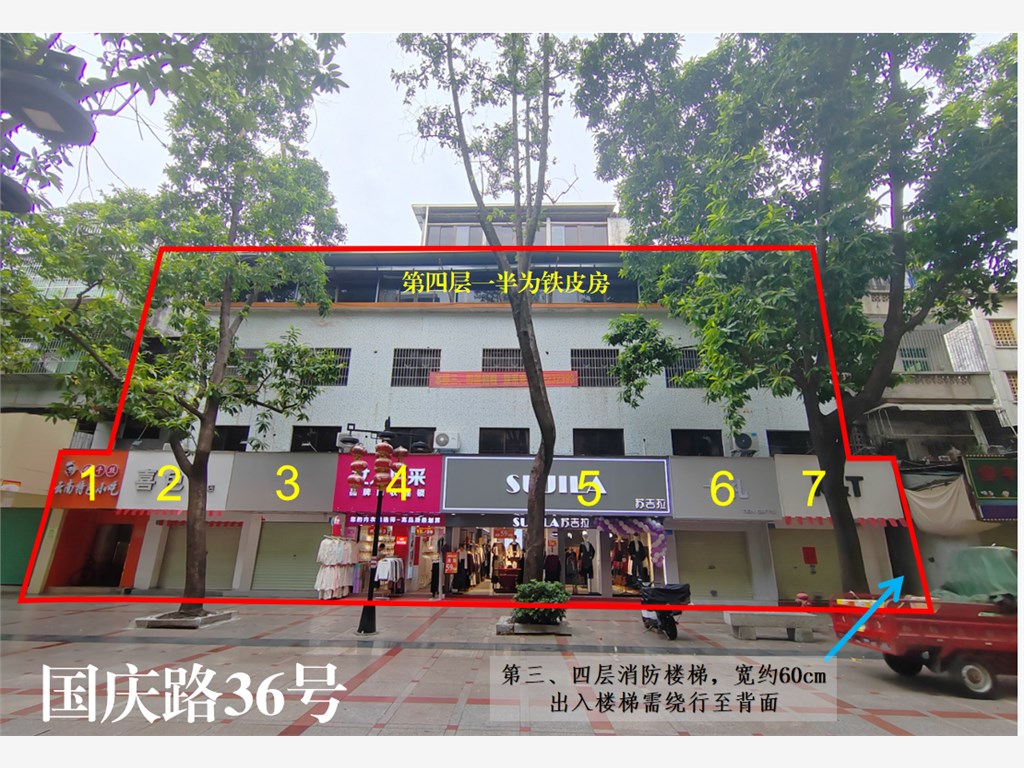 标的七:惠州市惠城区国庆路36号三层及四层仓库出租,总建筑面积约492.97平方米,月租金底价0.3311万元,竞价保证金0.5万元。